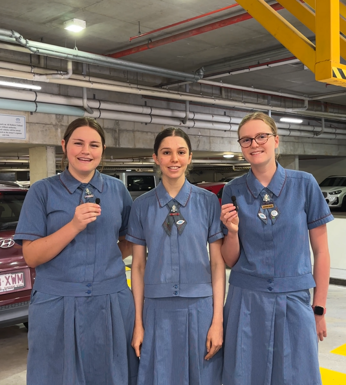 Our Year 10 representatives—Jess D, Emma B, and Miranda H— are members of our Eco Justice Group, one of the groups offered as part of our Mercy Action program. They led a project to reduce pollution in our Dodge Lane Carpark.